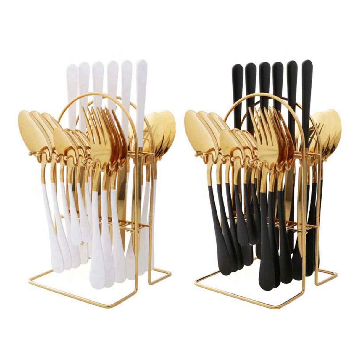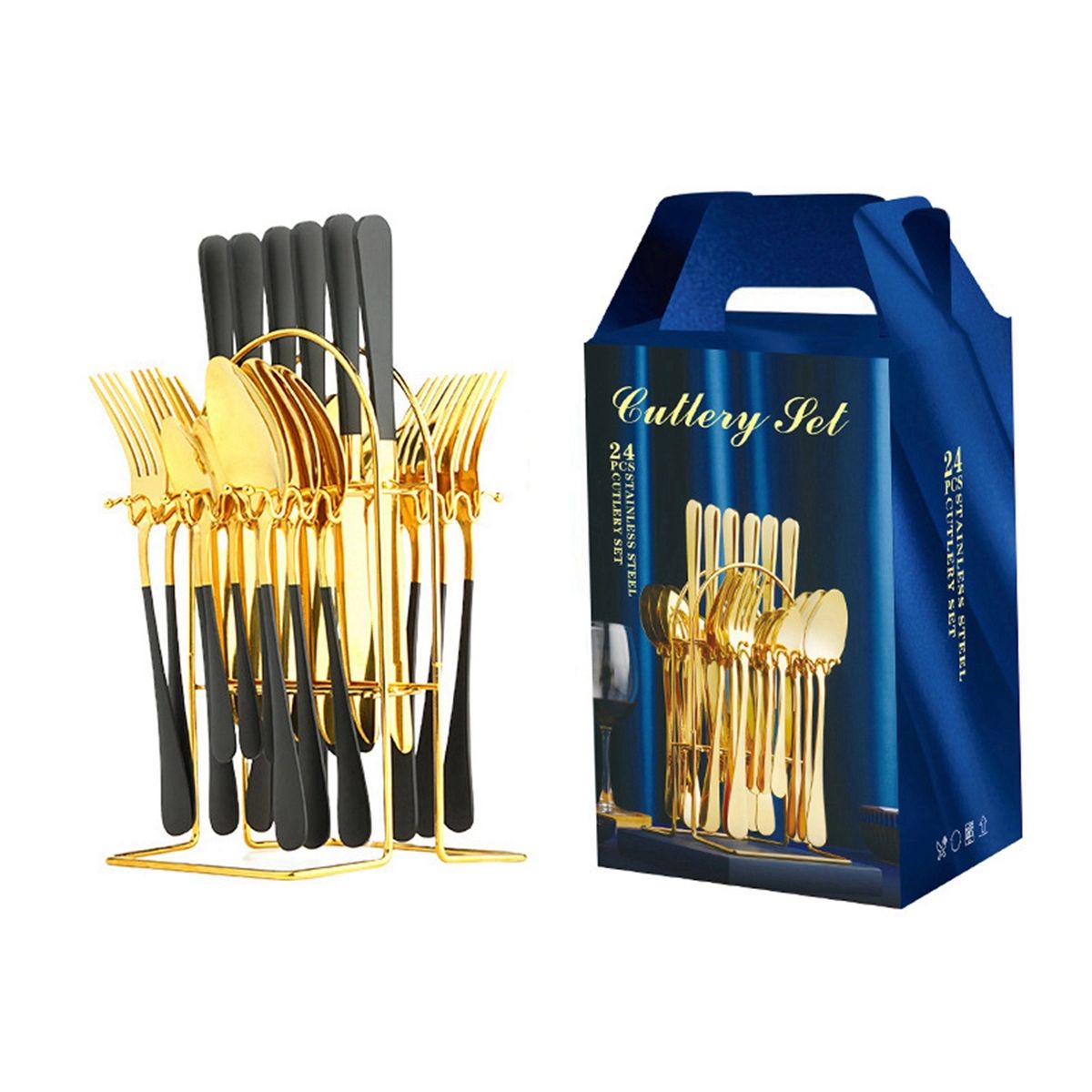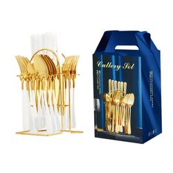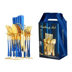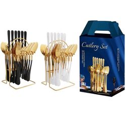 24 Piece Gold Silverware Flatware Cutlery Set With Stand