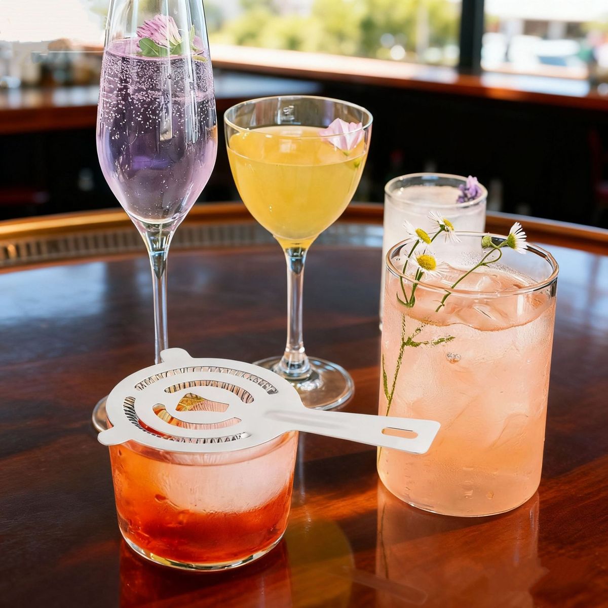 Upgrade your mixology experience with our professional-grade stainless steel cocktail strainer. This premium bar tool features a durable 304 stainless steel construction with a unique dual-ear design that securely fits all standard mixing tins and shakers. The tightly-woven spring coil provides superior filtration, effectively catching ice chips, fruit pulp, and herb particles while allowing smooth liquid flow