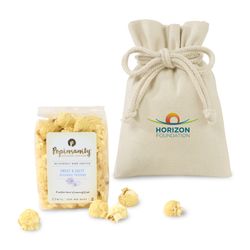 The Poppinsanity Popcorn Snack Gift Bag is a simple, thoughtful way to brighten someone’s day. Filled with delicious sweet & salty popcorn and packaged in a canvas drawstring bag, it’s the perfect desk drop, room gift, or new-hire welcome treat.