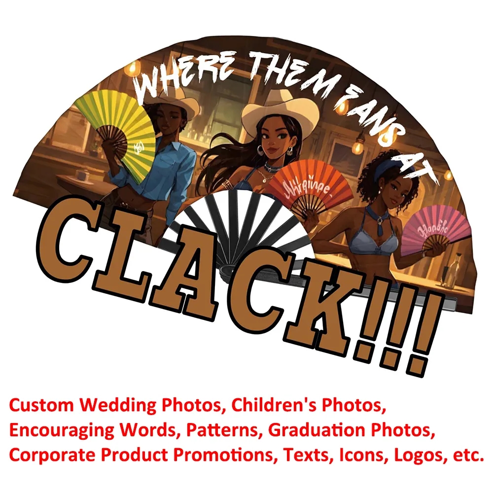 Festival Western Accessories, Where Them Fans at Clack Fan, Line Dance Popping Fan, Cowgirl Fan for Line Dancing, Western Hand Fans, Boots on the Ground, Large Festival Folding Fan